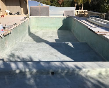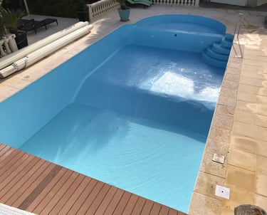 Nous avons ensuite procédé à la rénovation complète du bassin, en appliquant un revêtement polyester stratifié, suivi d’une finition en gelcoat, pour garantir une étanchéité parfaite, un rendu propre et moderne, et une durabilité optimale.