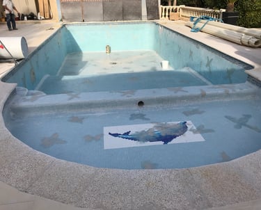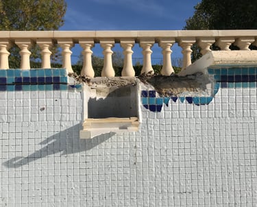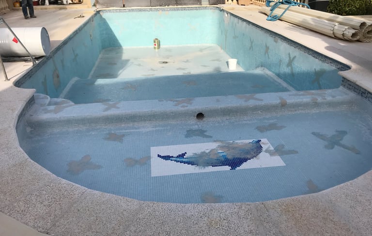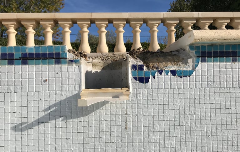 À La Garde, nous sommes intervenus sur une piscine en béton recouverte de mosaïque, présentant des signes d’usure avancée.